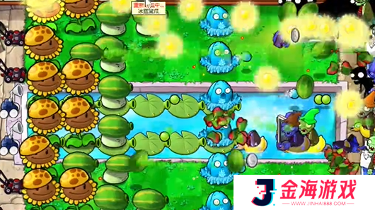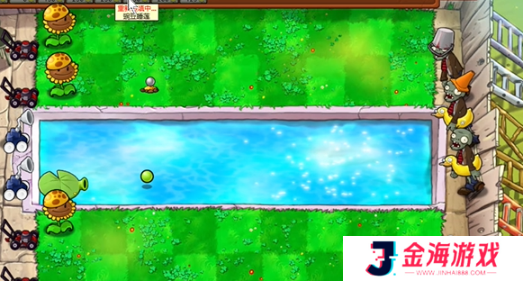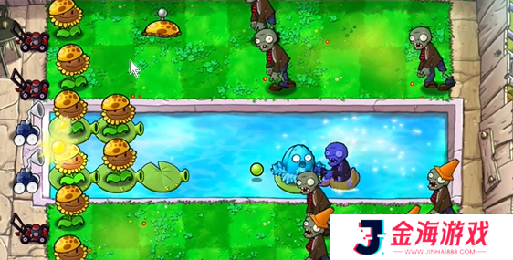 4、在泳池中种植两个寒冰坚果,对敌人造成减速效果。