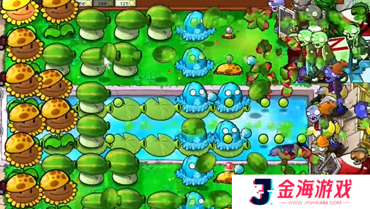 7、最后在中间种植多个西瓜喷菇和寒冰坚果就可以过关了。