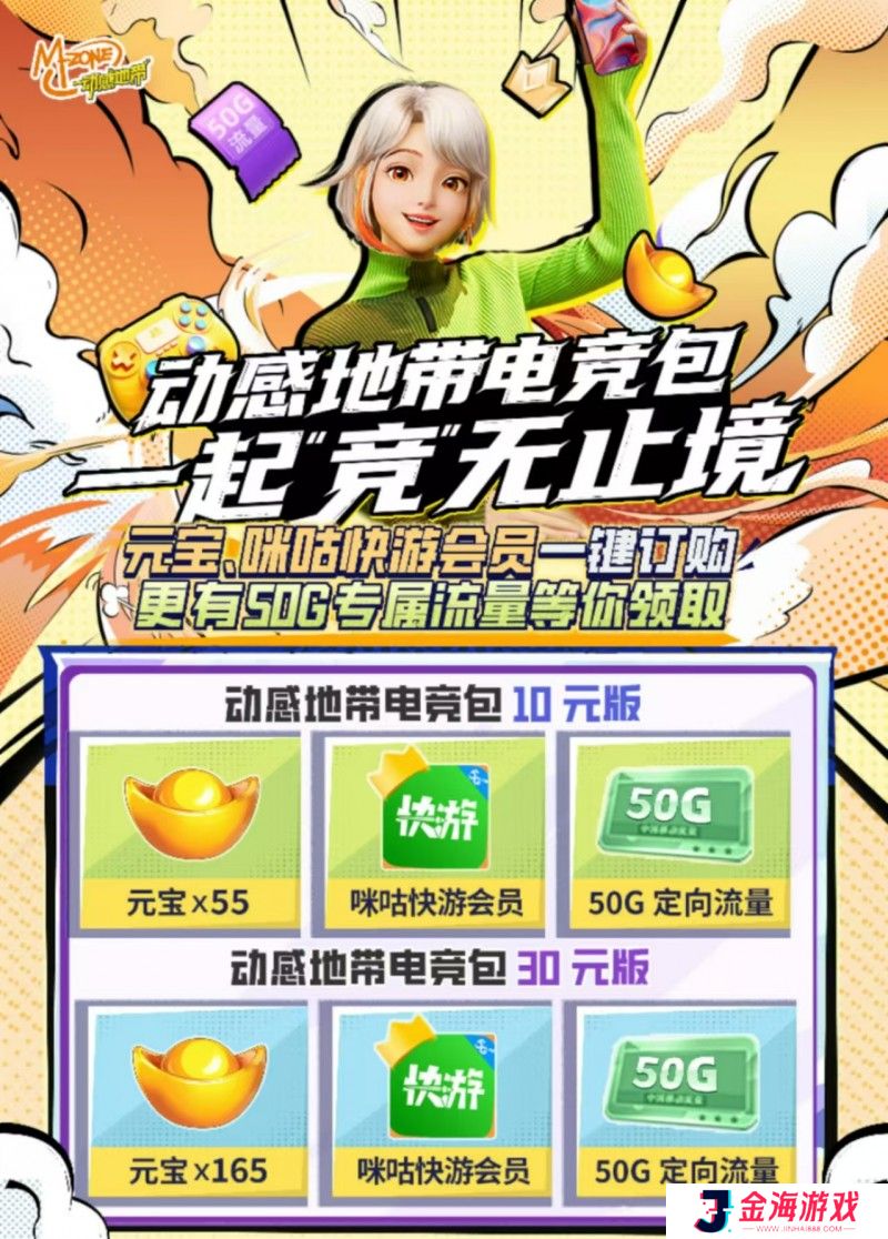 动感地带电竞包畅享游戏道具权益、咪咕快游会员一键订购,更有50G专属流量等你领取~