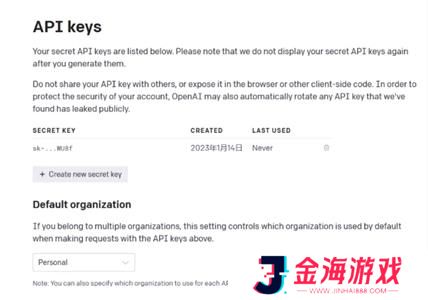 2、之后切换到api key选项,根据这里的提示新建一个api key并且保存到本地。