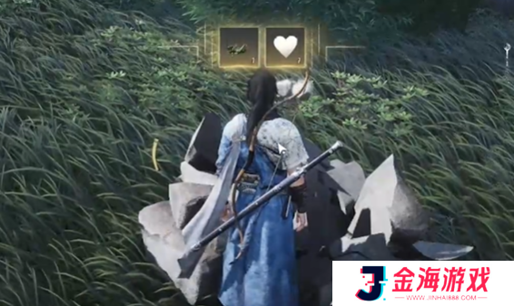 2、到达后往西北方走,到达下方石堆处后使用千金坠就能获得。