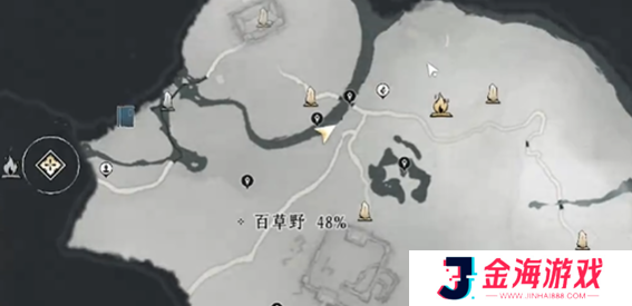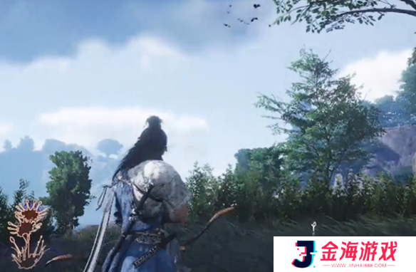 1、首先前往图中标记点处,然后往南跑,接着在树旁边拾取一朵花。