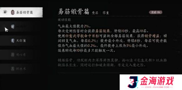31级可开启,提升心法等级可增强角色属性,提高武学造诣。