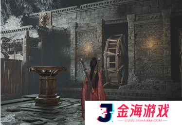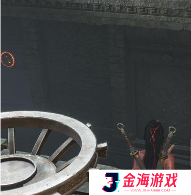 4、拉动拉杆后开门,立即射箭,跳下去用金玉手对准门上的玉开门。