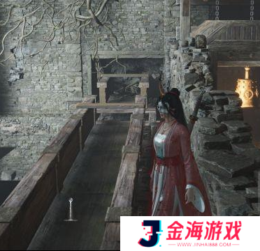16、回到图中的位置,射箭,钟响,跳到第三关的院子里,用金玉手开门。