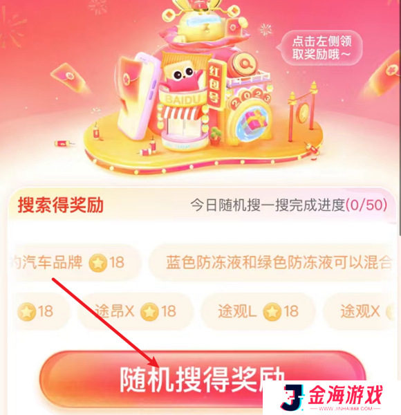 用户每天都能通过点击“随机搜得奖励”来获得相应的积分,每天限50次。