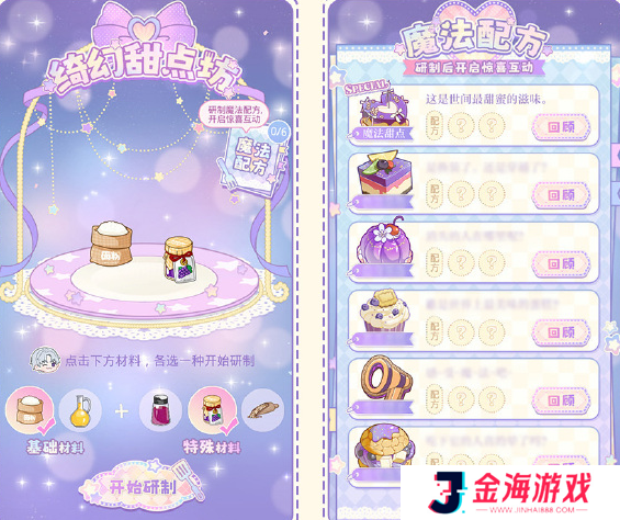 2、在对应专属基础材料和对应专属特殊材料中各选择1种进行研制,可解锁魔法配方,吃下即可开启惊喜互动。每位男主对应的魔法配方各有6种。