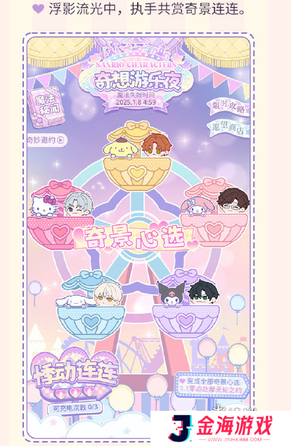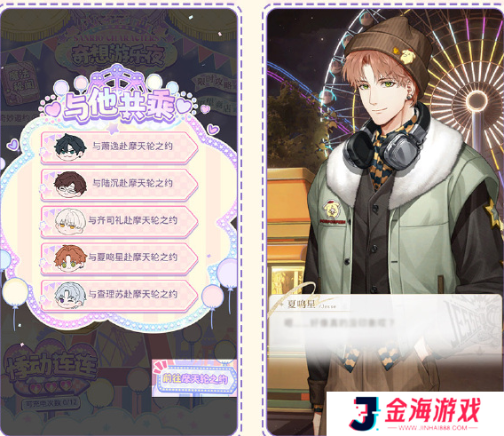 1、摩天轮之约:完成全部[奇景心选]互动后可于1月1日 00:00 起与他共赴摩天轮之约缔结甜蜜之吻。