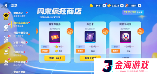 周末商店特惠11月22日至11月24日限时再启,超值6元入手【疯狂马戏团】面饰,更有赛季夺宝券、身份卡等超值好礼等你解锁。