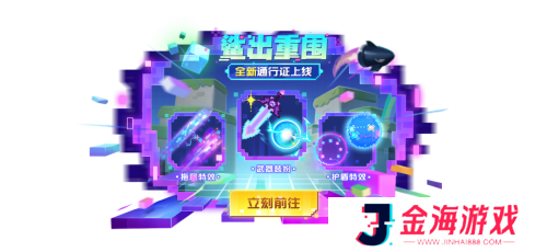 鲨出重围全新通行证上线,解锁通行证,即可轻松获取拖尾特效、武器装扮、护盾特效等全新像素风格战斗效果,一秒助你突破次元壁!