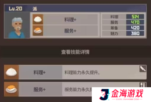3、派:在烹饪与服务领域表现卓越,同时具备一定的策划与吸引力。能够永久性地提高烹饪与服务水平。