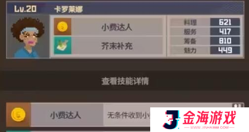 22、詹迪:补充芥末高手,小费收入丰厚。烹饪与服务能力不错,策划与吸引力方面需加强。