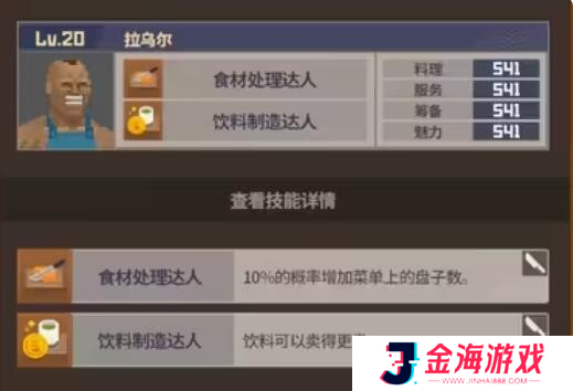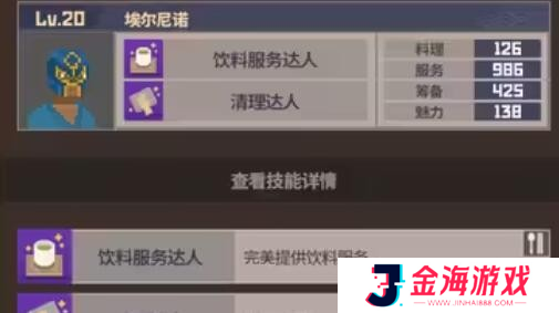 17、埃尔尼诺:精通饮料服务与场地清理,服务和吸引力能力强,但烹饪方面稍有不足。