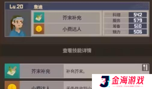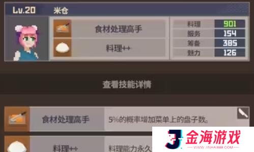 7、米仓:在烹饪方面有着非凡实力,同时服务与策划能力也相当不俗。可增加菜单品种,并大幅提高烹饪技能。