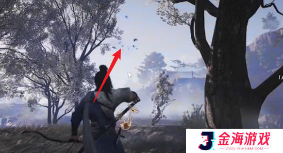 1、位置一:首先前往图中位置,然后从后院出发往西走,到达大树处后就能攻击蜂巢了。