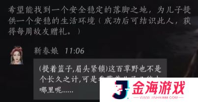 NPC需求:找一个安全稳定的落脚之地,为儿子提供一个安稳的生活环境。