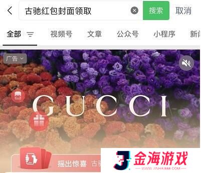 1、首先进入微信,再输入红包名,比如“古驰红包封面领取”。