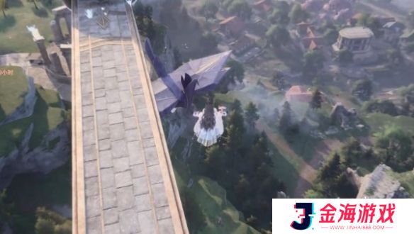 2、再跳到蓝色大纸鹤背上就可以了。