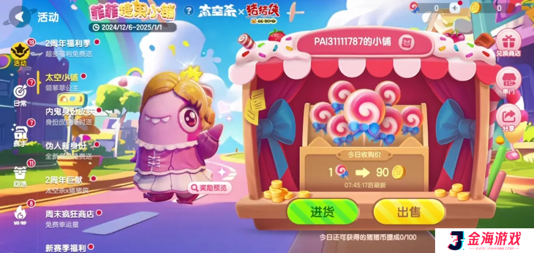 菲菲公主糖果屋限时开业啦!12月6日至1月1日期间,完成特殊任务即可领取棒棒糖,前往活动商店售卖售卖棒棒糖获得猪猪币,注意每日收购价格都会有所不同,各位理财专家,赶快行动起来用最佳比例兑换奖励。