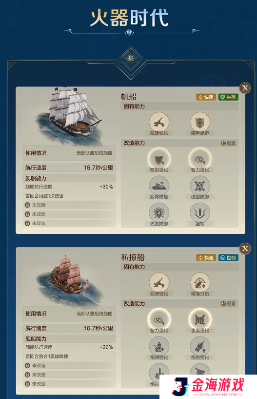火器时代的各类帆船,拥有较快的航行速度,可以凭借机动性掩盖火力不足的劣势;工业时代的各类装甲船只,属性均衡,且配备对空打击能力,是玩家在海战中可以依赖的坚实伙伴;而在电气时代,各类巡洋舰以及驱逐舰的出现扩充了海战的规模,舰艇配备的尖端武器具备瞬间歼灭敌人的恐怖火力。