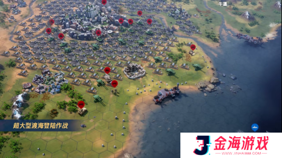 为此,《世界启元》先是设计了一套全新的海战地图。地图新增“海洋”地格单位,玩家可以通过码头、港口城市等建筑让陆上单位下海成为海上单位。并且在海洋中,玩家无需连地就可以在海域畅通无阻地快速推进,并可以通过码头等建筑上岸重新成为陆上单位,继续在陆上推进。