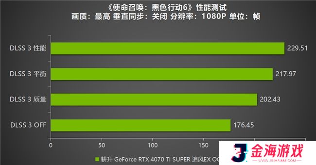 为了深入评估《使命召唤:黑色行动6》的性能表现,特地挑选耕升 GeForce RTX 4070 Ti SUPER 追风EX OC显卡进行测试。本次测试采用极致画质设置下,针对1080P、2K和4K三种分辨率下进行测试。测试过程中,特别关注了NVIDIA DLSS 3在开启与关闭态时该技术对游戏性能产生的变化。