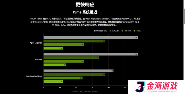 游戏同时还支持NVIDIA Reflex技术,该技术旨在降低系统延迟,从而提升玩家在游戏中的响应速度。对于射击游戏而言,更低的延迟能够显著提升玩家的反应速度和瞄准精准度,助力玩家在激烈的竞技中抢占先机。如在《Apex英雄》中,开启NVIDIA Reflex技术可降低近20ms的系统延迟,将响应速度最多提升37%,确保玩家在射击操作上几乎没有延迟。