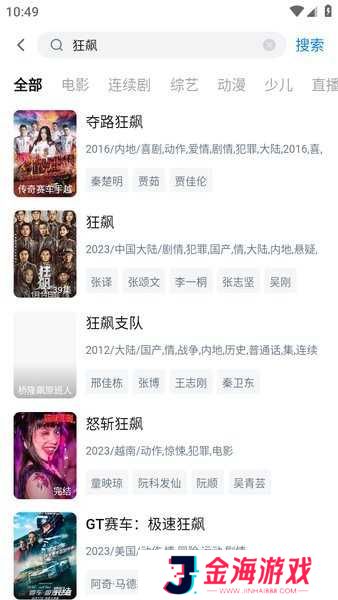 打开大师兄影视后,点击头部的搜索框,输入关键字,就可以搜电视剧了,比如狂飙;