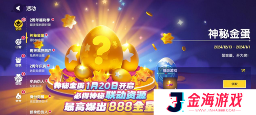 神秘金蛋降临飞船,闪闪发光的金宝贝,绝对藏有惊喜!现在登录即可领取鲨鲨的神秘金蛋,2025年1月20日上线即可开启,最高888枚金星、神秘联动道具等你拿!金蛋里会爆出什么宝贝呢?拭目以待!