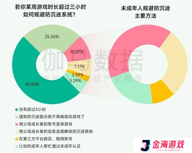 在防沉迷效果层面,49.83%的未成年游戏用户每周游戏不超过3小时,还有25.26%遇到防沉迷提示便终止游戏,总计75.09%的未成年游戏用户遵守防沉迷约定。