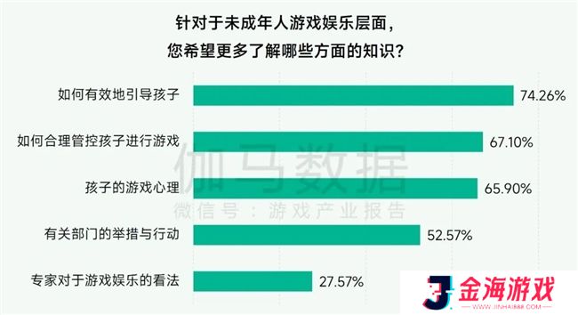 家长问卷结果显示,多数家长希望了解未成年人游戏娱乐层面的相关知识,尤其是如何有效地引导孩子(74.26%)、如何合理管控孩子进行游戏(67.1%)和孩子的游戏心理(65.9%)这三个方面占比最高,表明家长不仅关注孩子的游戏行为,更希望深入理解孩子游戏背后的心理动机,以及如何科学地介入和引导。相关部门、机构和专家应通过开展未成年人保护课堂等方式,针对性地帮助家长掌握有效的管控方法和引导策略。未来伽马数据也将围绕相关层面展开布局,持续推动基层宣传教育,增强防沉迷政策的地方影响力,并促进游戏企业、学校、家庭及未成年人之间的有效沟通,共同维护未成年人的健康成长环境,并持续为政策效果评估提供实证研究数据。