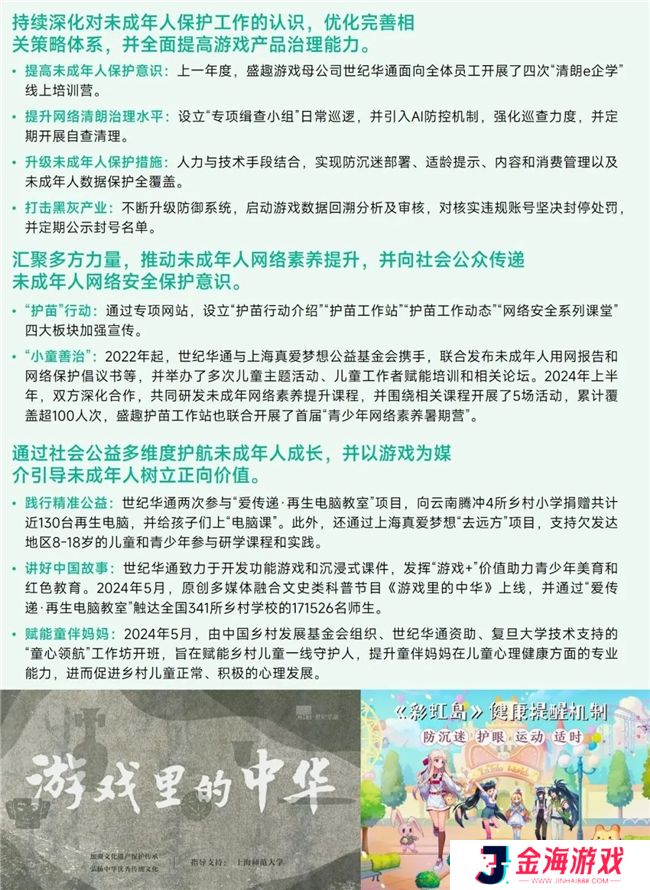 持续完善防沉迷等未成年人保护措施依托游戏联动传递正向价值