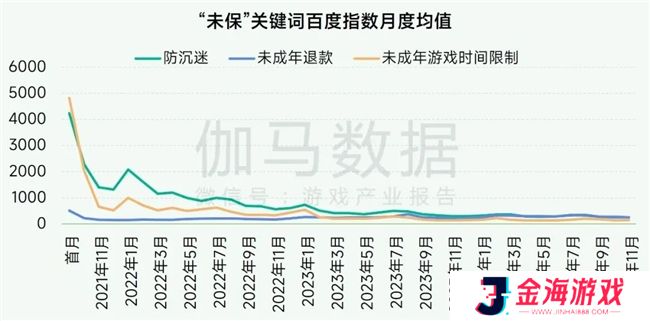 百度指数显示,2021年8月30日新规发布以来,关键词“防沉迷”“未成年游戏时间限制”“未成年退款”等搜索量整体呈现下降趋势,2024年11月均值相比首月分别下降了94%、97%和50%,表明相关问题持续得到了有效的管理和解决。