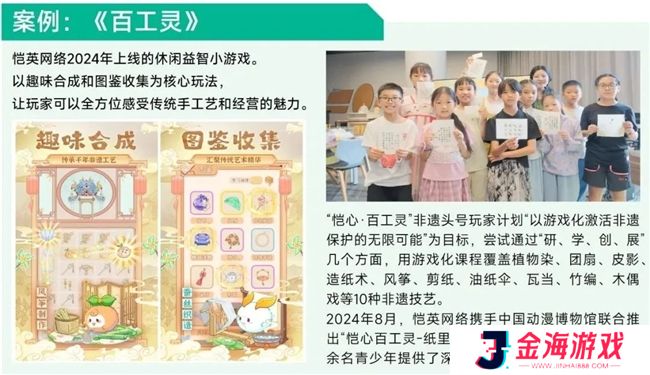 另一方面,恺英网络依托自身技术及行业优势,通过企业公益品牌“恺心公益”积极投身乡村振兴教育领域,为偏远少数民族地区的儿童素养教育贡献力量。同时,恺英网络致力于通过原创自研IP讲好中国故事,围绕传统文化内核进行全产业链内容开发,2024年上线的《百工灵》就是以动画和游戏化方式为非遗注入新活力的代表。恺英网络将产品IP与公益品牌深度结合,启动了“恺心百工灵-非遗头号玩家计划”公益项目,在专注提升青少年美育教育的同时,赋能非物质文化遗产传承及人才培养,并推动和实现对在地文化的有效保护。