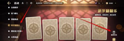 2、在活动专区里,找到并点击左侧的“新岁翻翻乐”选项,随后在右侧区域点击“翻牌奖励”按钮。